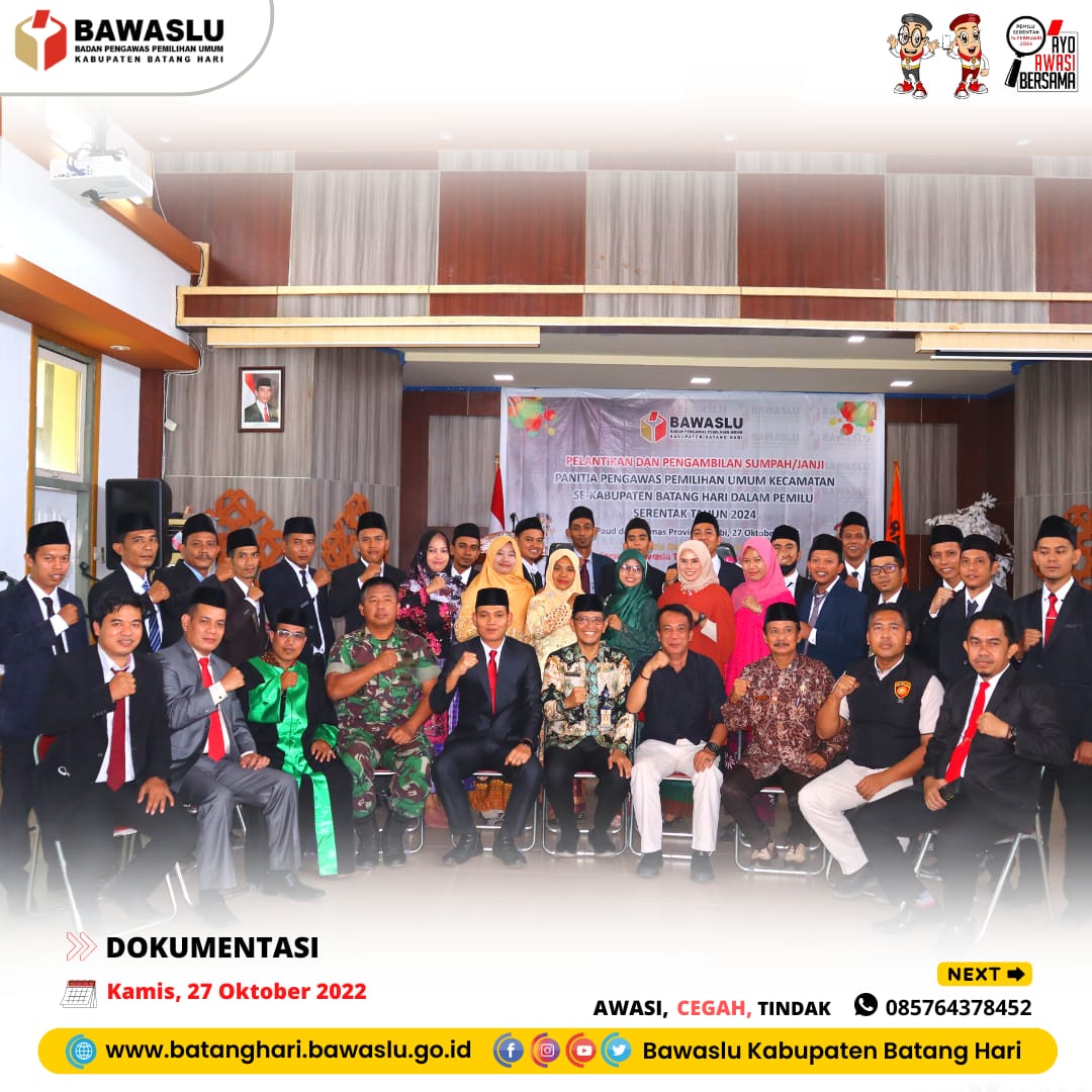 Batang Hari, Badan Pengawas Pemilu (Bawaslu) Kabupaten Batang Hari melantik 24 orang Panitia Pengawas Pemilihan Umum (Panwaslu) kecamatan untuk ditempatkan di delapan wilayah kecamatan di Kabupaten Batang Hari.