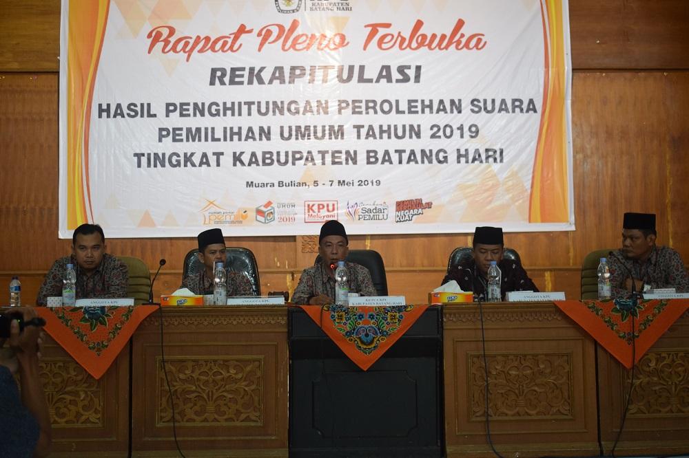Selasa pagi Perhitungan Perolehan Suara Pemilihan Umum 2019 Tingkat Kabupaten Batanghari ditutup oleh ketua KPU Batanghari Akadir.