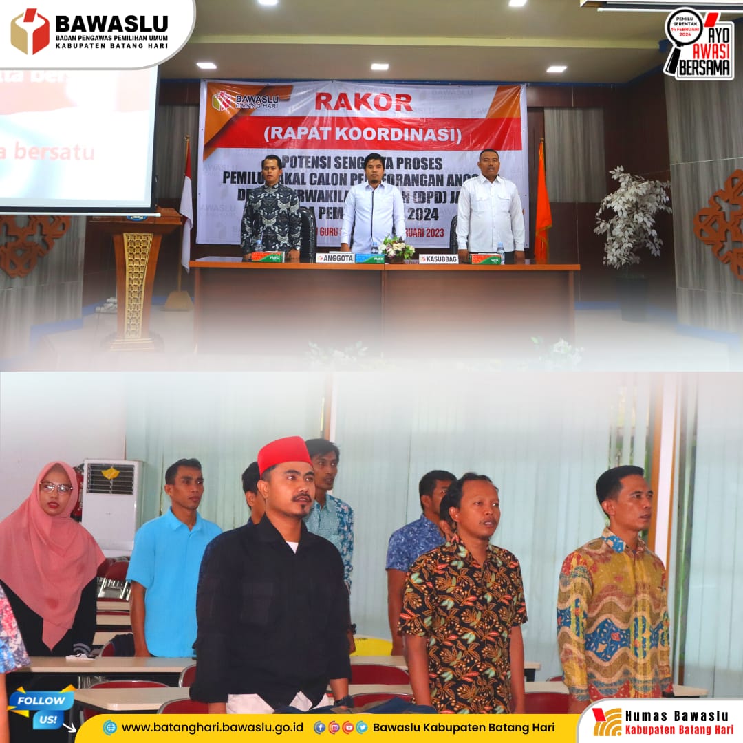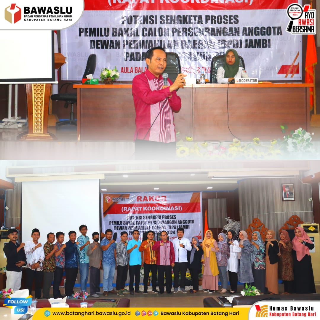 Siap Awasi Verifikasi Faktual Bakal Calon Anggota DPD, Bawaslu Batang Hari Gelar Rapat Koordinasi Potensi Sengketa Proses Pemilu